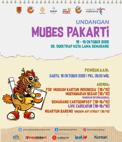 | 18-19 October 2025 Oudetrap Building, Old Town, Semarang. Saturday October October October October October 2025 at 09:00 WIB Agenda: - Focus Group Discussion 'Indonesia Cartoon Museum' (18 October2025) - General Assembly (18 October2025) - International Exhibition - Semarang Cartoon Festival (18-19 October2025) - Live Cartoon (18-19 October2025) - We are Drawing Cartoons Together