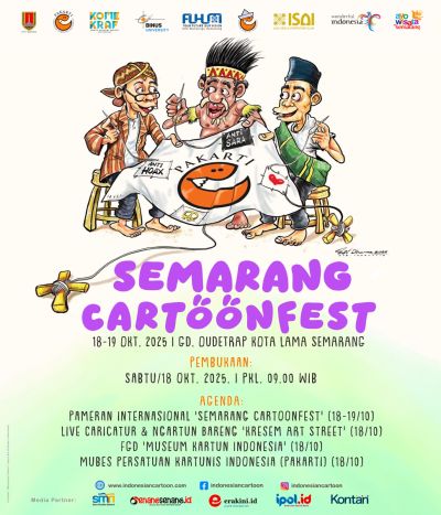 | 18-19 Ekim 2025 Oudetrap Binası, Eski Şehir, Semarang. Açılış: Cumartesi, 18 Ekim 2025, saat 09:00 WIB Gündem: - Odak Grup Tartışması 'Endonezya Karikatür Müzesi' (18 Ekim) - Genel Kurul (18 Ekim) - Uluslararası Sergi - Semarang Karikatür Festivali (18-19 Ekim) - Canlı Karikatür (18-19 Ekim) - Birlikte Karikatür Çiziyoruz 'Kresem Sanat Sokağı' (18 Ekim) |