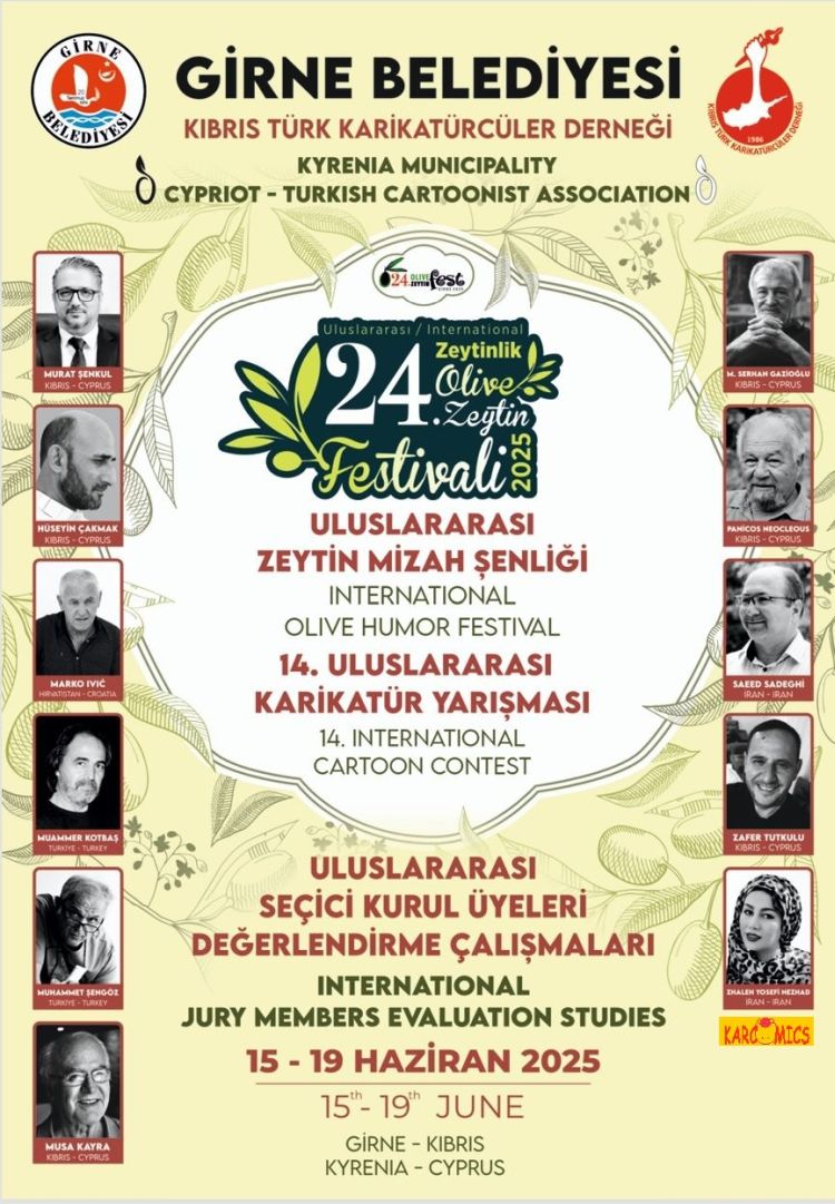 GİRNE BELEDİYESİ ve KIBRIS TÜRK KARİKATÜRCÜLER DERNEĞİ 24. ULUSLARARASI ZEYTİN FESTİVALİ ULUSLARARASI ZEYTİN MİZAH ŞENLİĞİ 14. ULUSLARARASI KARİKATÜR YARIŞMASI 2025(GIRNE – KIBRIS)15 MAYIS 2025