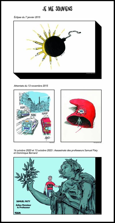 Mouans Sartoux Kitap Festivali'nde büyük bir başarı ile karşılaştıktan sonra ve bu akşam Le Crayon Albert Raphael Space'de de sergisini sunacak. "Kalemin ucunda: Cumhuriyetin Değerler: Özgürlük, Eşitlik, Kardeşlik, Laiklik: Karikatürler ve çizimler 19:30'dan itibaren" basın