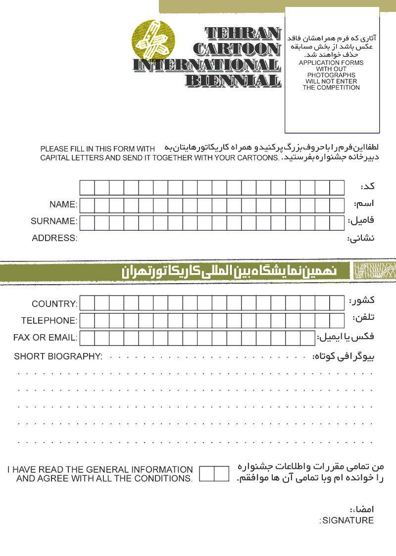 The 9th Tehran International Cartoon Biennial organizing committee invites cartoonists from all over the World to participate in this contest.