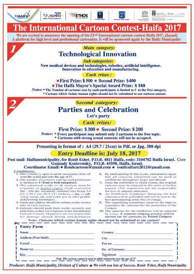 The works can be made in black & white or color, with any drawing technique, we accept only wordless cartoons, without subtitles. The submitted work should not have been awarded before the deadline of this contest.