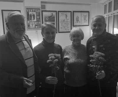 Slovakya'nın Prešov şehrinde Ukraynalı, Hollandalı ve Slovak sanatçıların karikatür sergisinin açılışı. Bu olay Peter Razus ve arkadaşları sayesinde oldu. Hollandalı sanatçı Tjerd Royalds, Slovak Bobo Pernetsky ve Ukraynalı açılış törenine geldi. Henüz Ukrayna halkını Rashist Sürüye karşı mücadelede desteklemeyen tek bir Slovakla tanışmadım. Onlar her zaman hükümet politikalarını aktif olarak protesto eden Slovak dostlarımızın olduğu yerde değiller