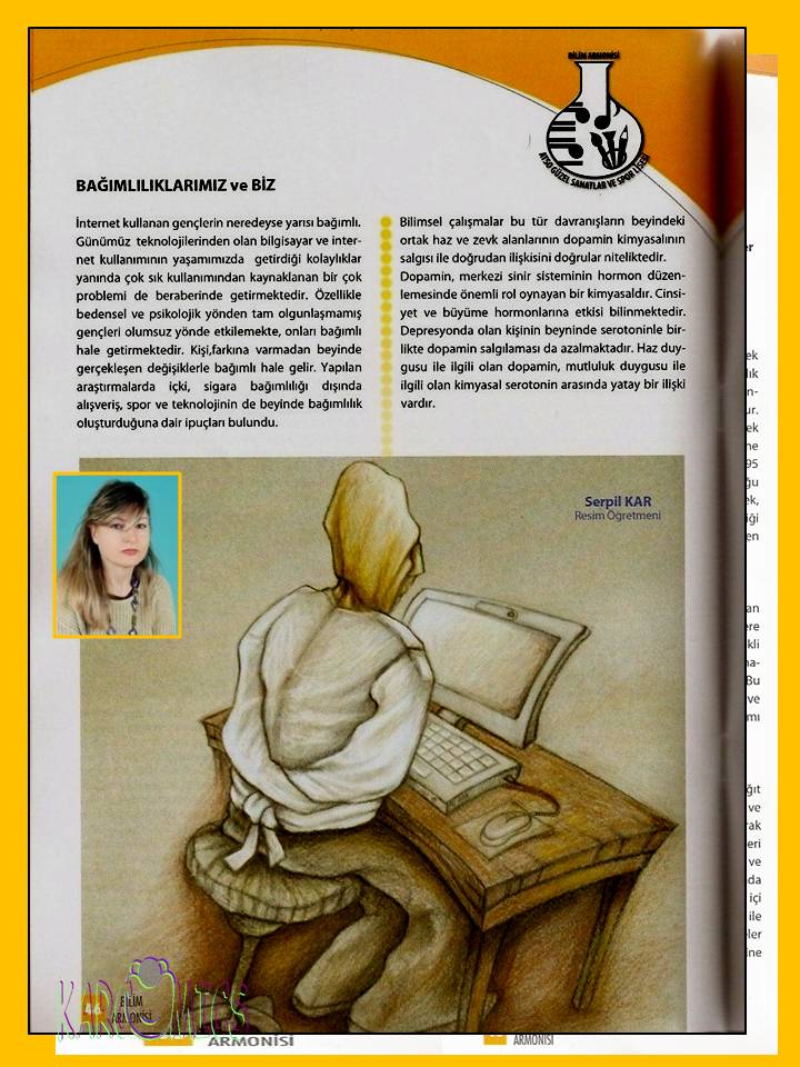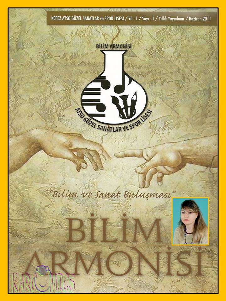 Editörlüğünü Hatice Üstüner'in üstlendiği "Sanatın Işığında,Bilimin Bayrağını Sonraki Nesillere Taşıyabilmektir" fikrini benimseyen ATSO Güzel sanatlar ve Spor Lisesi tarafından ilk sayısı yayımlanan "Bilim Armonisi " Dergisinin ilk sayısı yayınlandı. Karcomics Magazine Editörlerinden Karikatürcü - Eğitmen Serpil Kar görev yaptığı ATSO Güzel sanatlar ve Spor Lisesi tarafından yayınlanan "Bilim Armonisi" Dergisinin ( Haziran 2011) bu ilk sayısında uluslararası yarışma ve sergilerde yer alan karikatür çalışmaları ile yer almıştır.Toplam 54 sayfa kuşe kağıda basılı dergi A4 boyutlarında yayın hayatına başlayan dergi kendi alanında ileriki sayılarda ses getirecek bir çizgiye oturacak gibi görünüyor. |