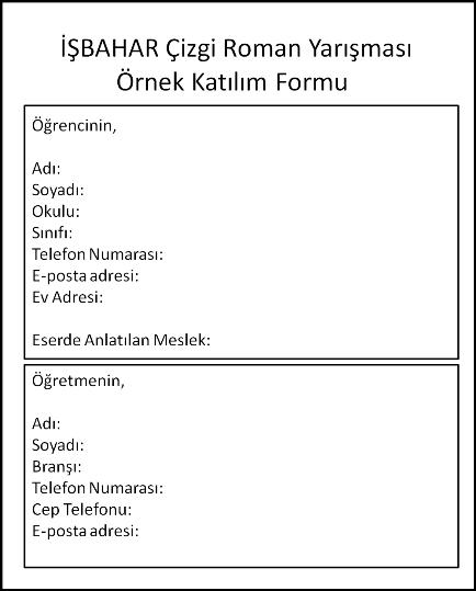 İletişim: Yarışma hakkında her türlü bilgi için iletisim@isbahar.com adresine başvurabilir, 02122343431 numaralı telefonu arayabilirsiniz. |