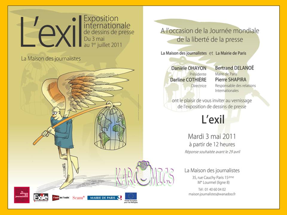 invitation au vernissage de L’exil exposition de dessins de presse 3 Mai 2011 -1 Juillet 2011 |