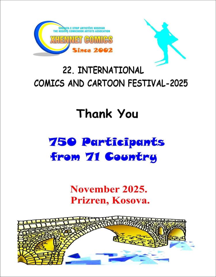 Sevgili sanat severler 22 ci festival kazanan listesi Strip and Cartoon Internationals - 2025, Prizren, Kosova. |