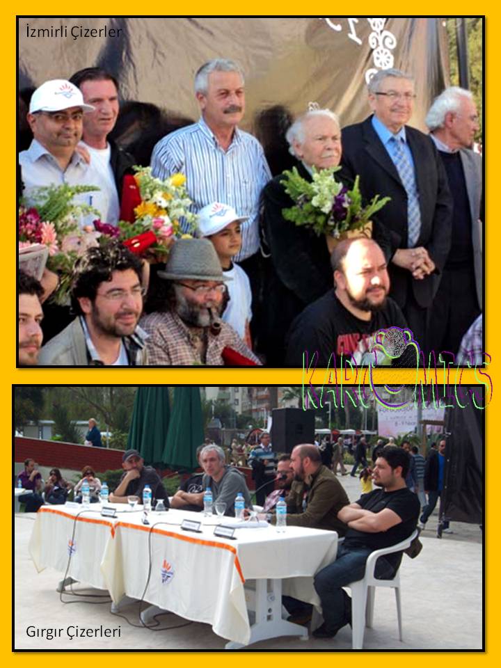 Şenliğin yapıldığı alanı yüzlerce mizah severin yanı sıra İzmirli çizerlerde boş bırakmadı. Ekrem Kılıç ve Özhan Mercan Denizli’den, Mustafa Bora Bodrum’dan gelerek katıldı. Konuklar her iki gece yemekte buluştu. Sohbet etme imkanı buldu. |