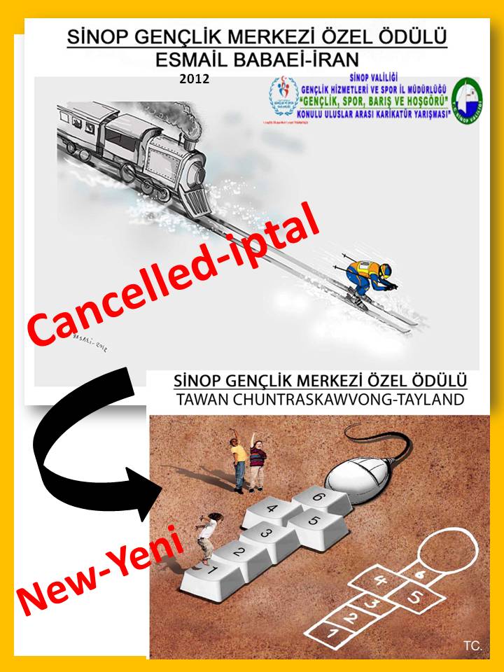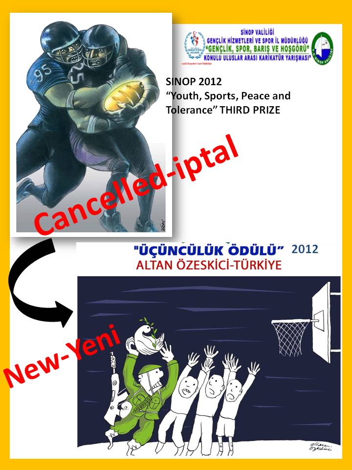 Direcorate of Youth and Sports. Cartoonists, Aşkın AYRANCIOĞLU (Turkey), Erhan Yaşar BABALIK (Turkey), Vladimir KAZANEVSKY (Ukraine), Seyit SAATÇİ (Turkey), Agim SULAJ (Albania), and Mikhail ZLATKOVSKY (Russia) have evaluated the cartoons and here are the results: |