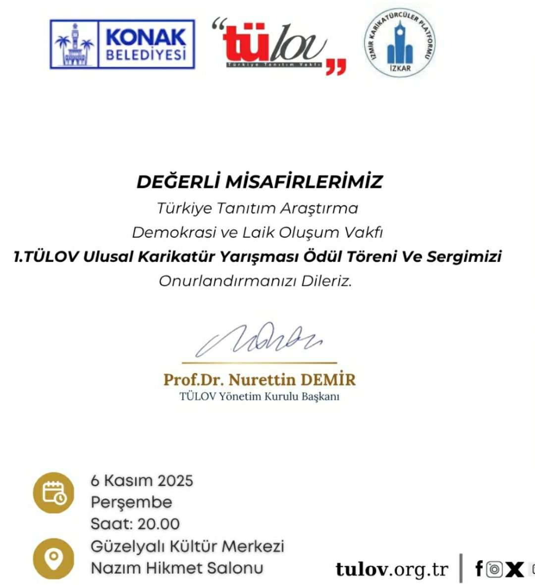 TÜLOV 1.Ulusal Karikatür Yarışması Ödül Töreni ve Sergi Etkinliğine Davetlisiniz...