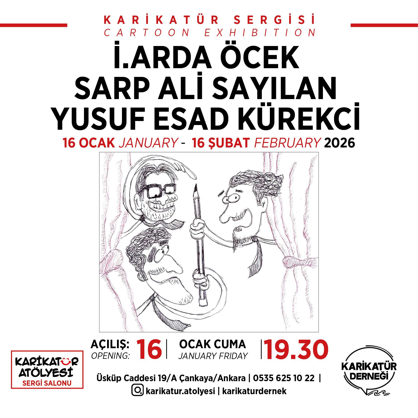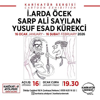 | Karikatür Atölyesi’nin ilk göz ağrılarından olan 3 genç çizer İ.Arda Öcek, Sarp Ali Sayılan ve Yusuf Esad Kürekci’nin karikatürlerinden oluşan sergi 16