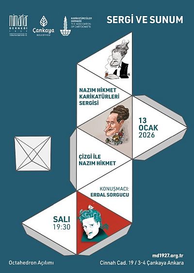 Ocak 2026 tarihinde açılıyor. Karikatür Atölyesi’nin çalışmalarında çocuk yaşlarda tanışan 3 genç çizer günümüzde üniversitede farklı alanlarda olsalar da ortak noktaları karikatür hiçbir zaman sona ermedi. Hayatın farklı konularını işledikleri bu ilgi çekici sergiye tüm sanat severler davetlidir. |