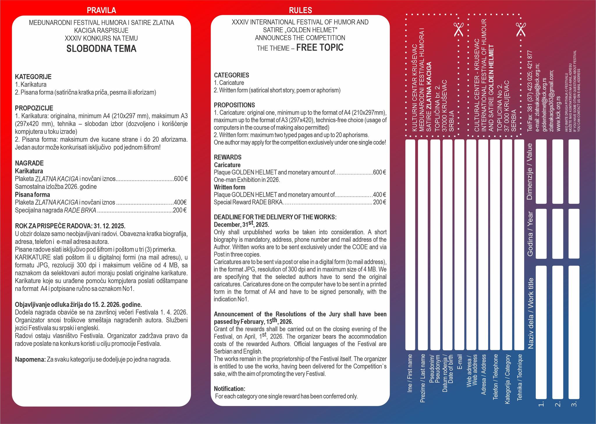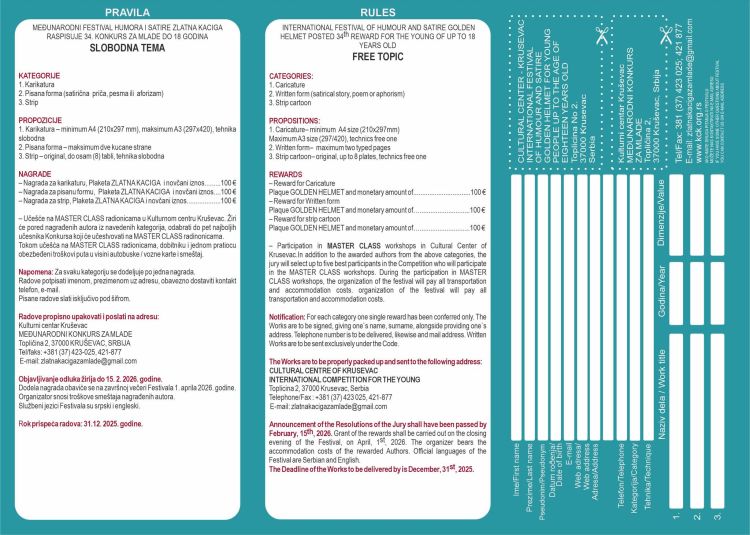 34th International "Golden Helmet" Humor and Satire Festival, Serbia 2026