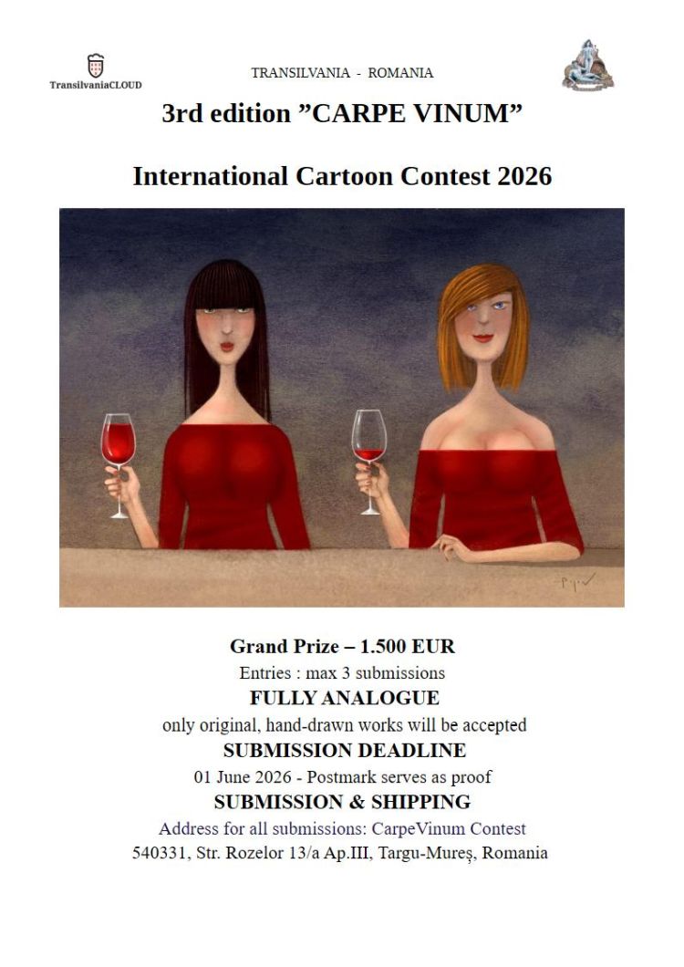 By submitting the works to International Cartoons Contest 2026 CarpeVinum, the artist accepts the decisions of the jury and the rules printed above.