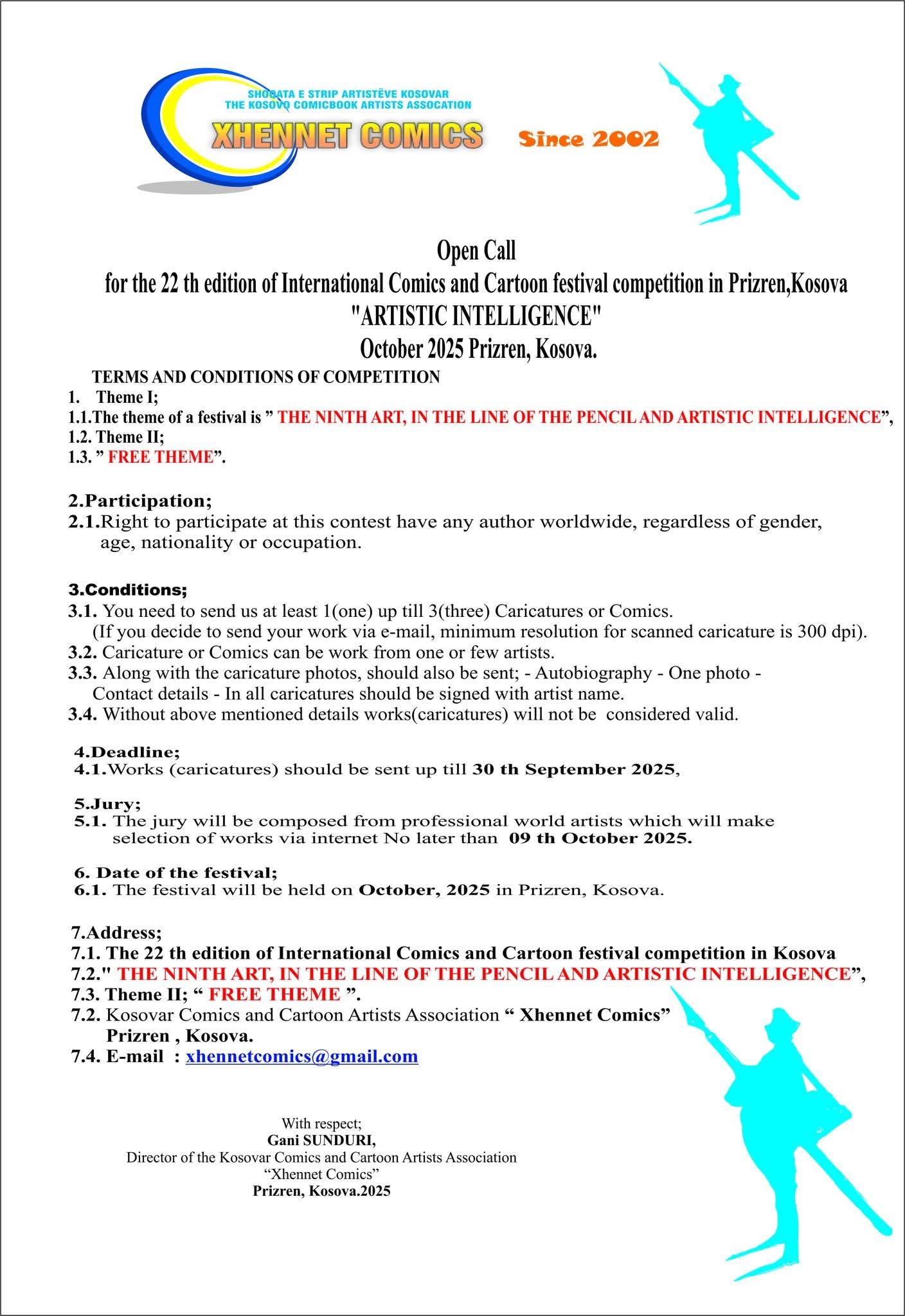 | 22.Uluslararası Prizren,Kosova Komik ve Karikatür Festivali 30 Eylül 2025 |