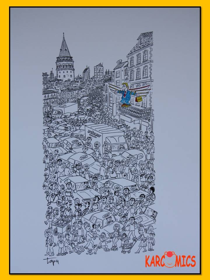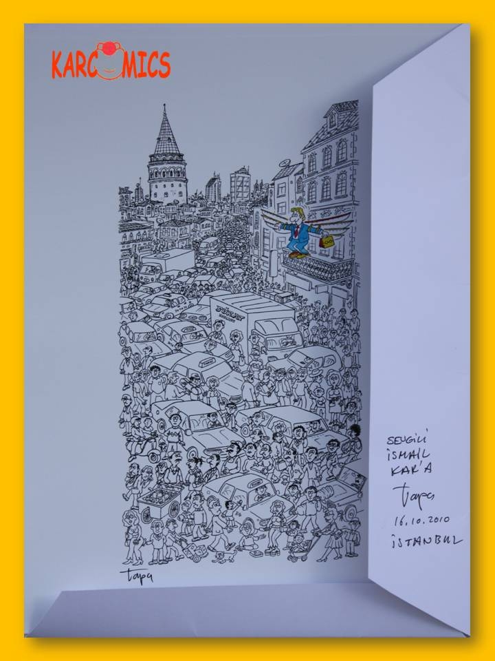29.7x42 Cm (A3) ölçülerinde, kuşe kağıda basılı tamamı renkli İstanbul karikatürlerinden oluşmaktadır... |